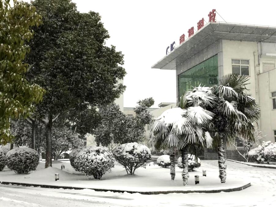 今年的雪來(lái)勢(shì)兇猛,全城開(kāi)啟“冰雪奇緣”模式。廠區(qū)道路、屋面、車棚、樹(shù)木被積雪覆蓋,給全體員工的出行帶來(lái)不便。但“CJE 常捷科技”在銀裝素裹下更顯熠熠生輝。